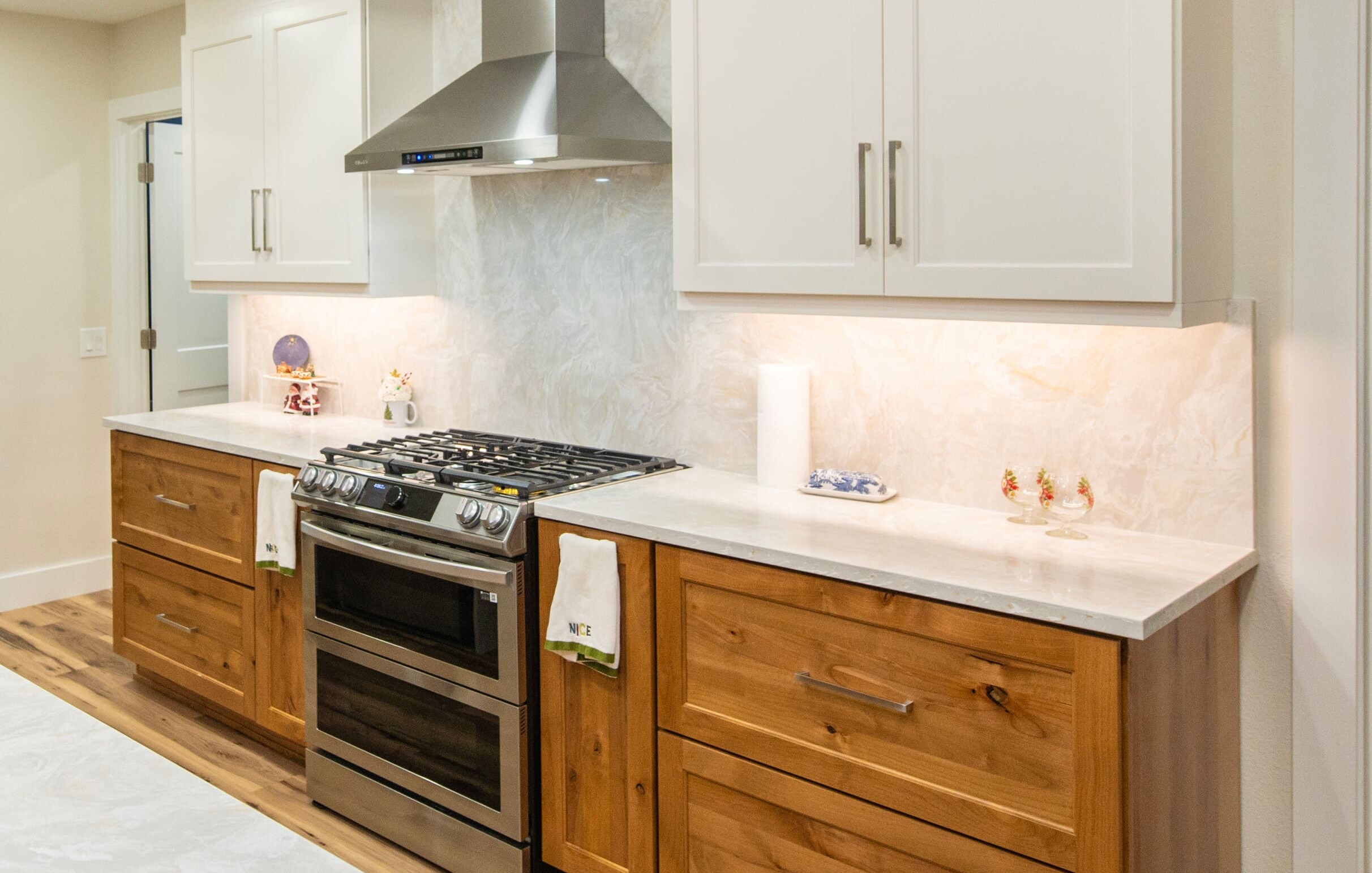 Door Style: Centennial15 Perimeter, Seneca Island and Range Hood